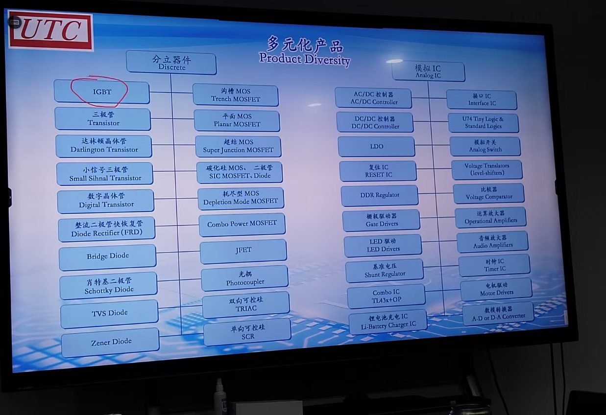 UTC成立于1990年,是全球領先的集成電路與功率半導體廠商 ,集團總部位于臺北,生產基地位于福州、廈門.全球擁有逾2300位員工,專注致力于模擬IC及分立器件Discrete 的研發(fā)、設計、晶圓制造、封裝、測試及行銷業(yè)務.公司經營策略采取IDM整合元件制造模式深耕多年, 擁有豐富的電源、類比元件產品線來提供客戶完整的解決方案. 并擁有專精的設計開發(fā)能力,品質認證的芯片與封測廠,強大的服務支援,期許以IDM資源垂直整合的優(yōu)勢,提供客戶最佳產品競爭力 ,并創(chuàng)造客戶最大之經濟效益.