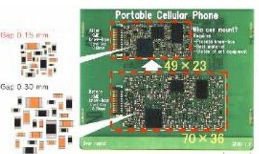 (例:如下圖中移動電話PCB板的尺寸降低了50%.)