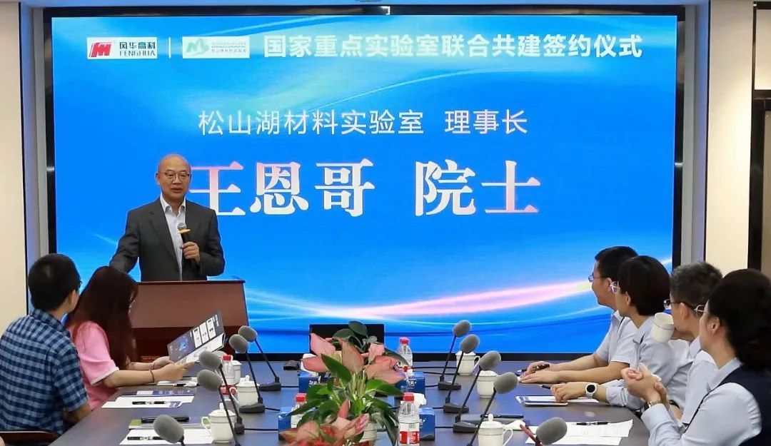 ▲松山湖材料實驗室理事長王恩哥院士參加簽約儀式
